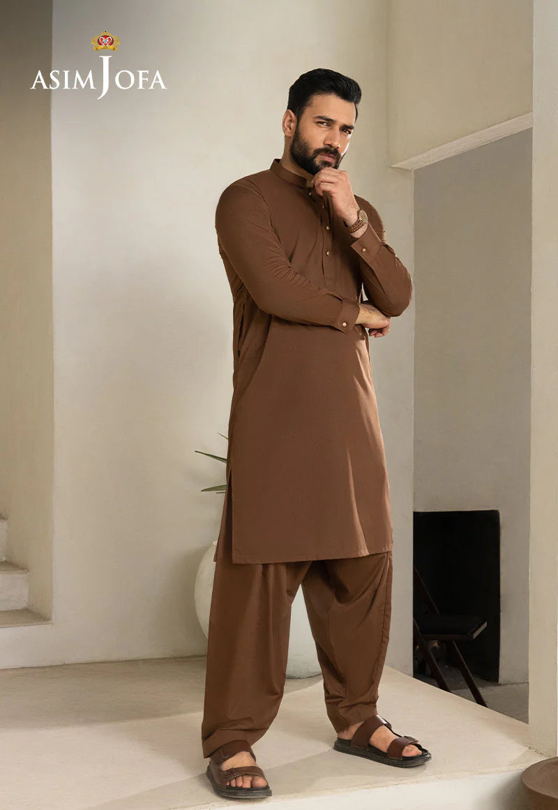 Russet brown breathes warmth into this classic shalwar kameez. Tailored for the discerning gentleman, it carries a heritage-rich appeal—rooted in culture, yet styled for the now.